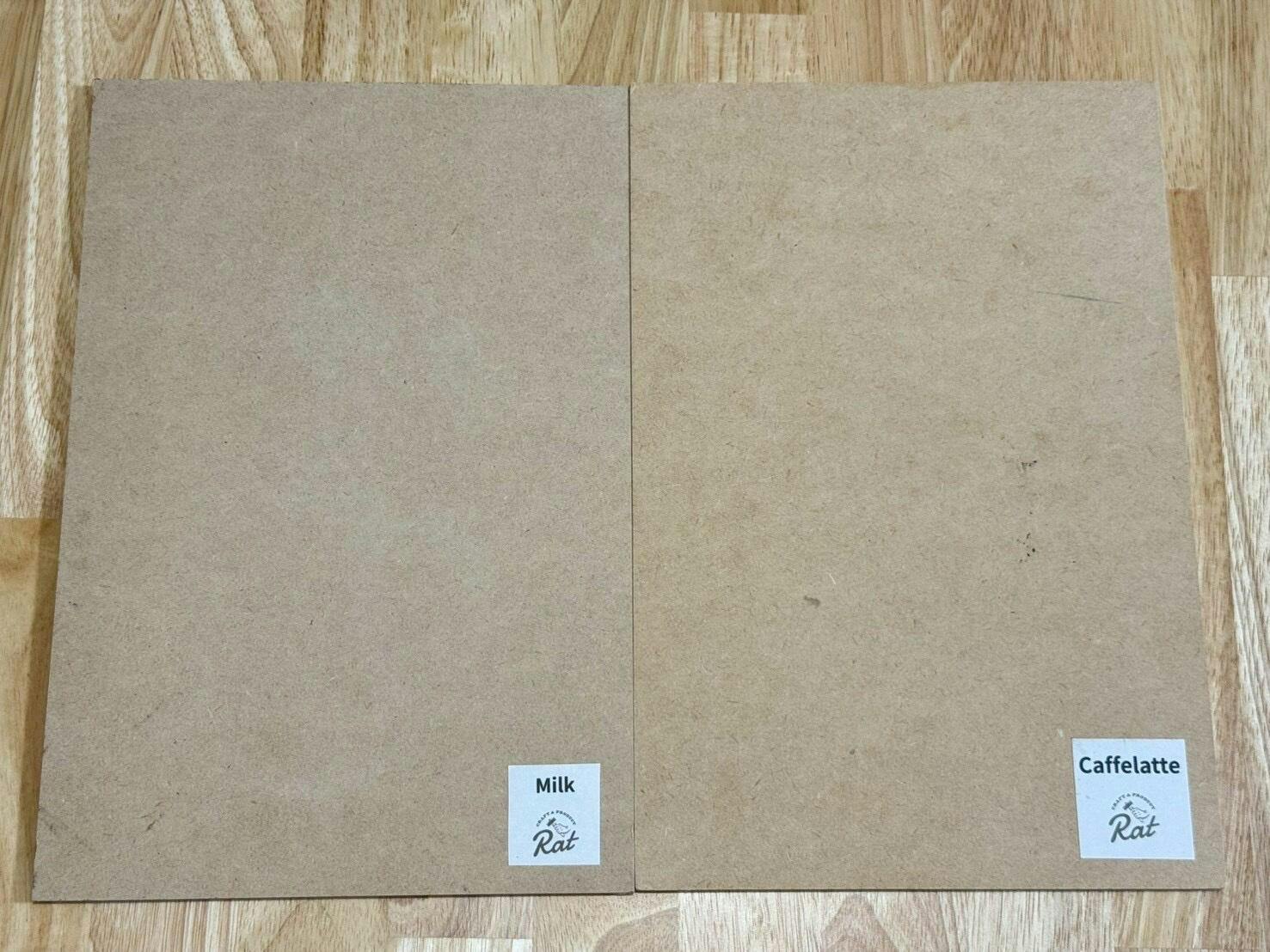 画面上ではどうしても色味に不安があったため、ミルクとカフェラテの2色をサンプル注文しました。
