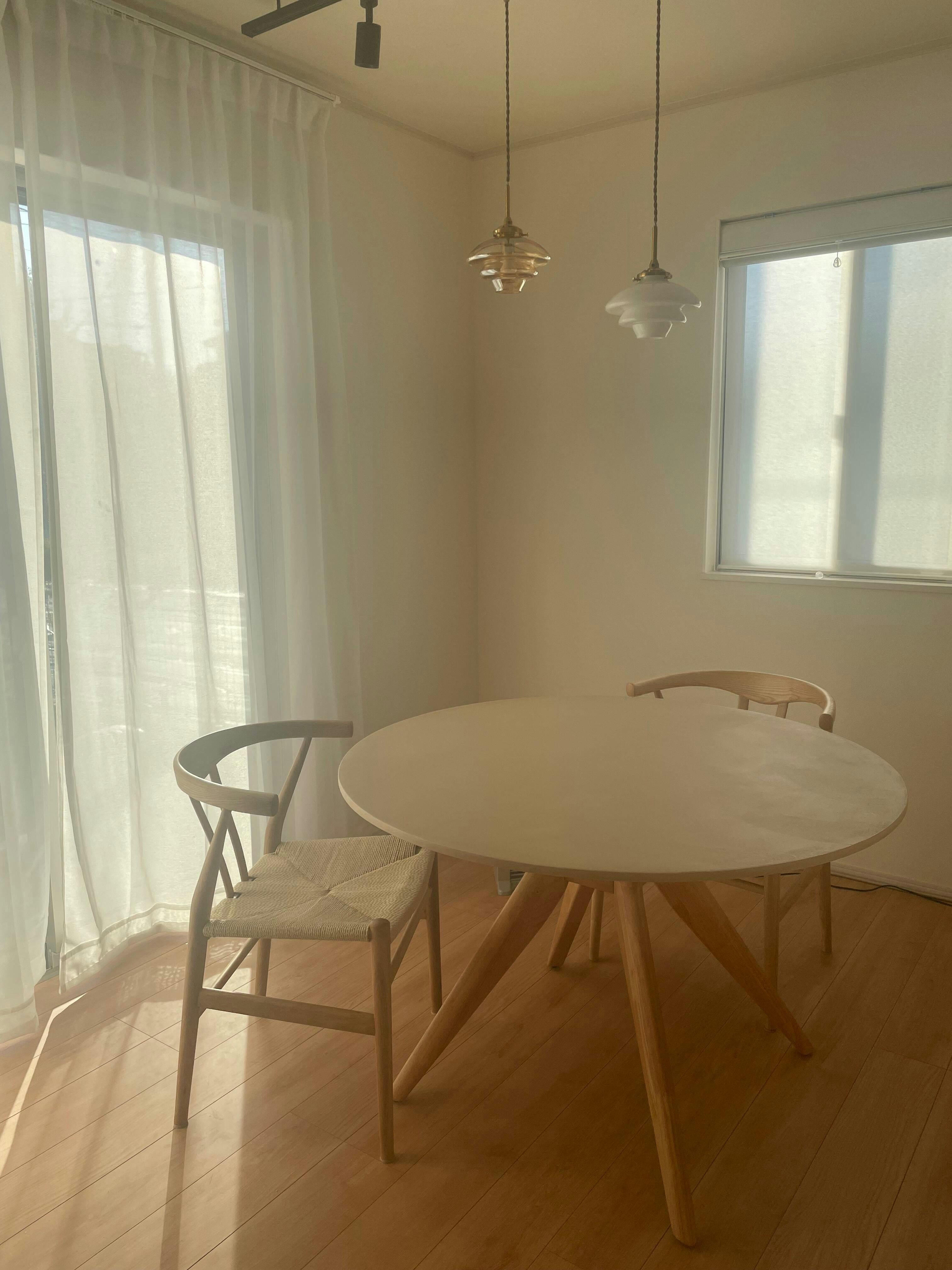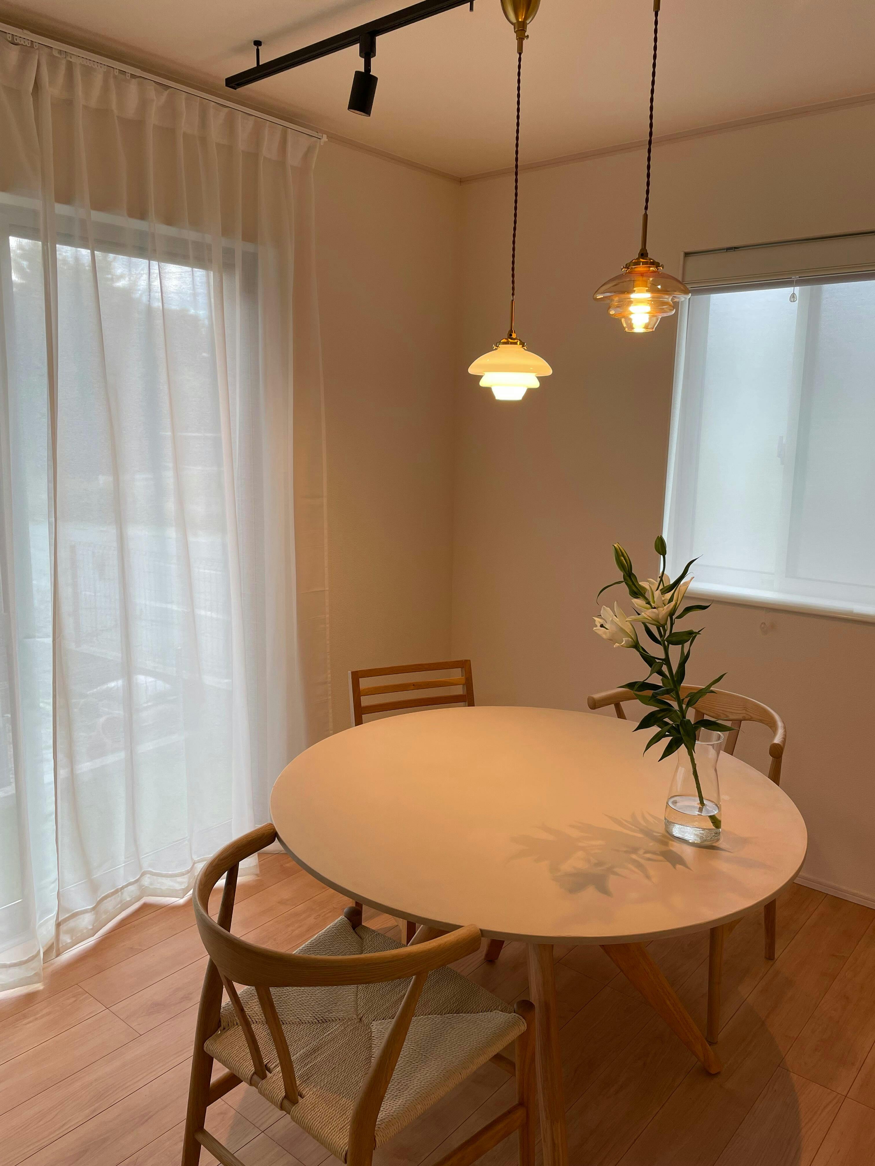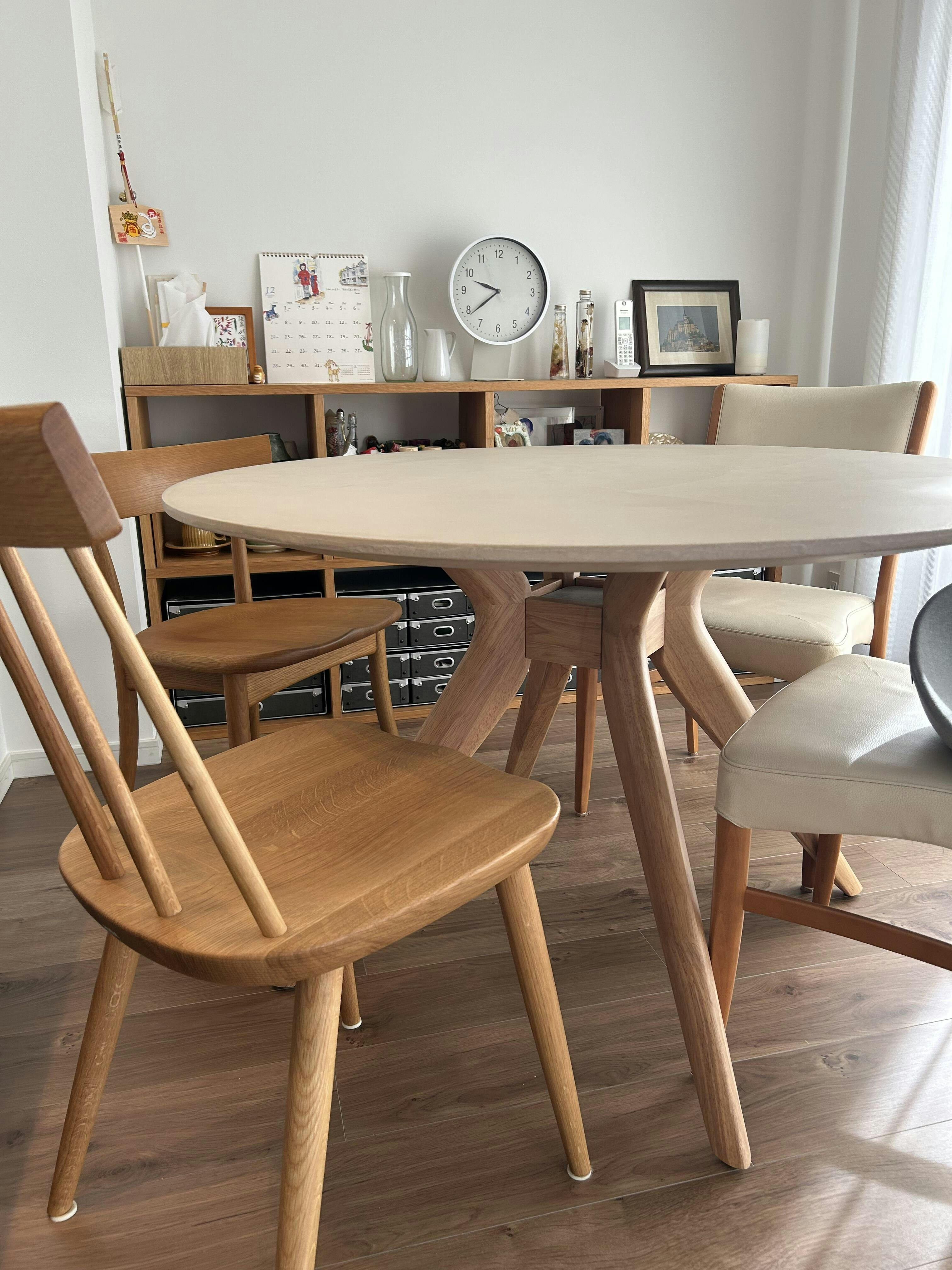 ラウンド型のダイニングテーブルをずっと探していたのですが、なかなか見つからず、やっと欲しい!と思えたのがR2でした。