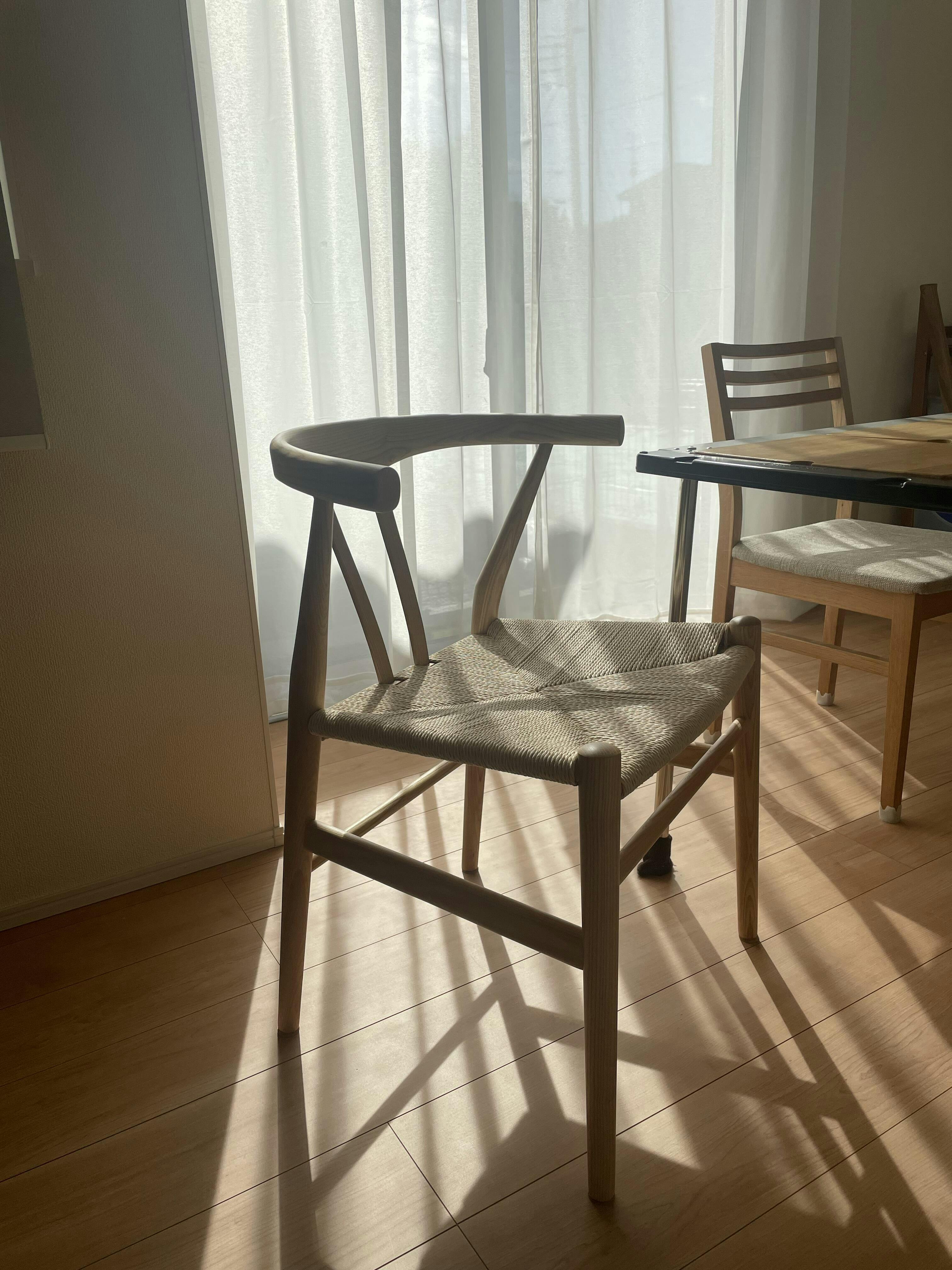 とても気に入っています。デザインの素晴らしさはもちろんですが、木の触り心地も、座面のしなやかさもとても良いです。冬の季節に購入したので、夏の薄着や地肌での座り心地はまだわかりません。星を4つにしたのは、食事中など、腕を引いた時に、肘掛けに自分の肘が当たるからです。ペーパーコードも、指で押すと押した部分が凹みますが、今後どの程度緩んでくるのかなぁと少し心配しています。