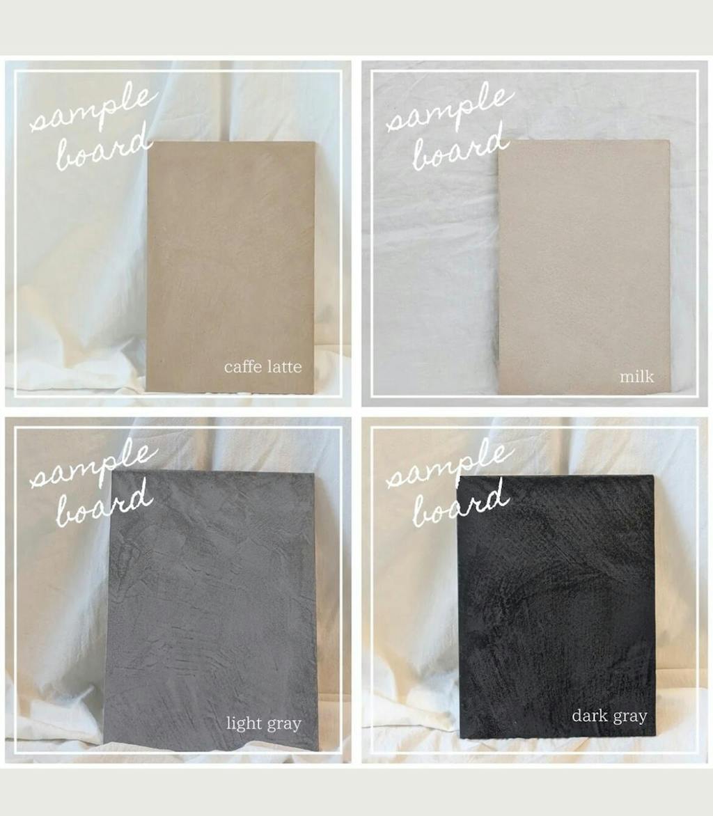 ベージュの色味とモールテックスの質感に憧れて、カフェラテとミルクの2色のサンプルを注文させていただきました。