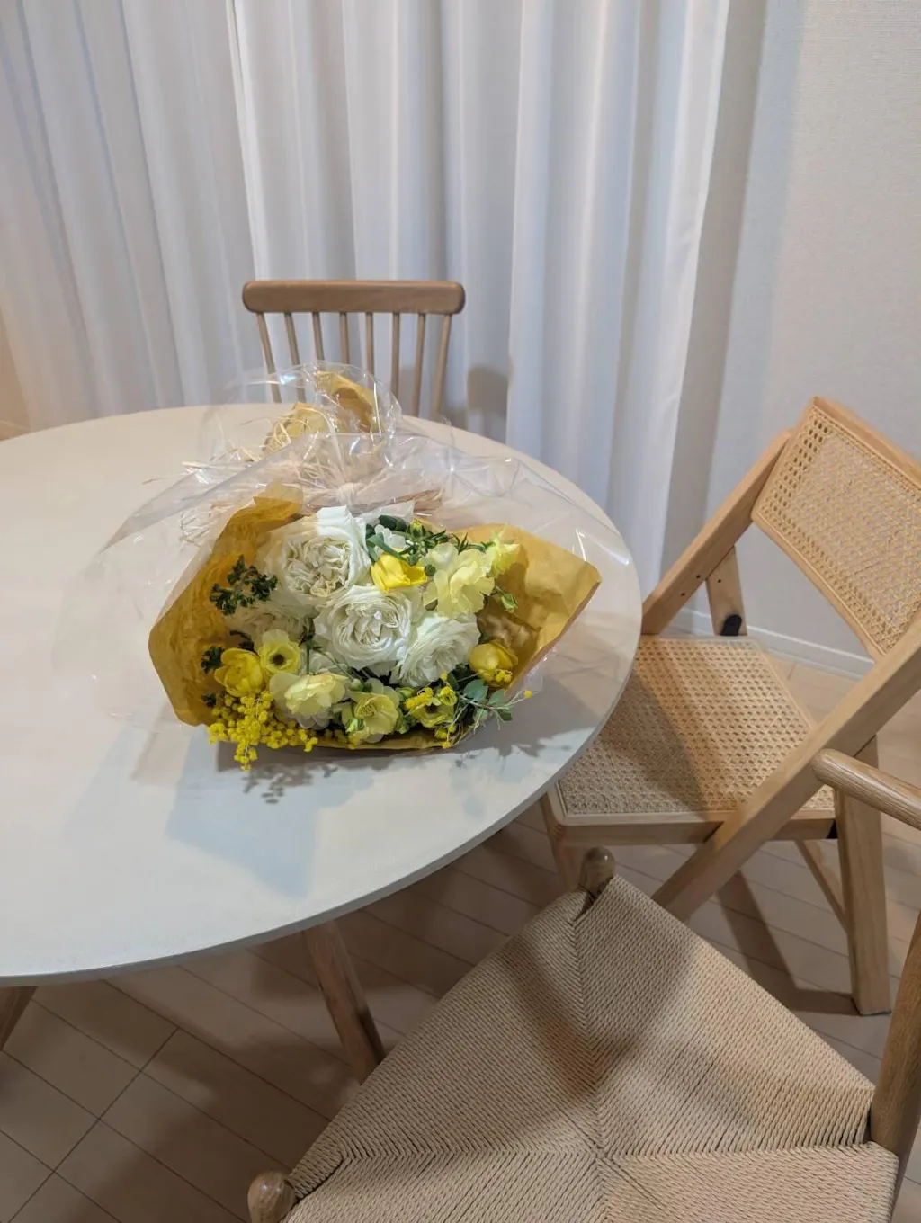 新居で使用するダイニングテーブルを検討していました。実物を見られないので不安な部分がありましたが、購入検討中も色味など相談に乗っていただけたことで購入を決めました。実物も光の反射などで色味も変わり、とても可愛いくて、これから使っていくのが楽しみです!この度は素敵なお品をありがとうございました。